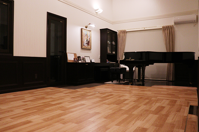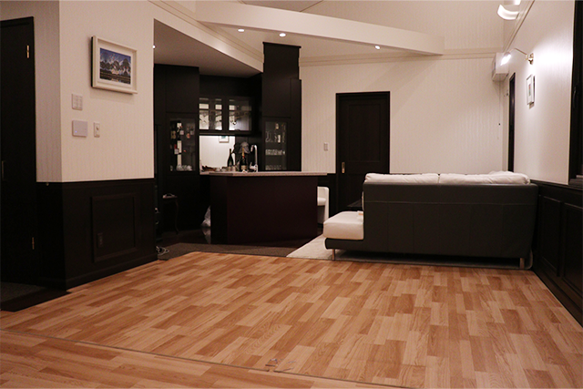 ヨガのスペースは集中力を高めるため、完全防音で木目調デザインのラグジュアリーな空間にしています。